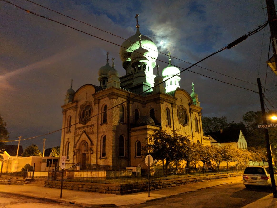 Excellently extended Art Museum. Rock and Roll Hall of Fame in an I.M. Pei waterfront building. St. Theodosius Russian Orthodox Cathedral.