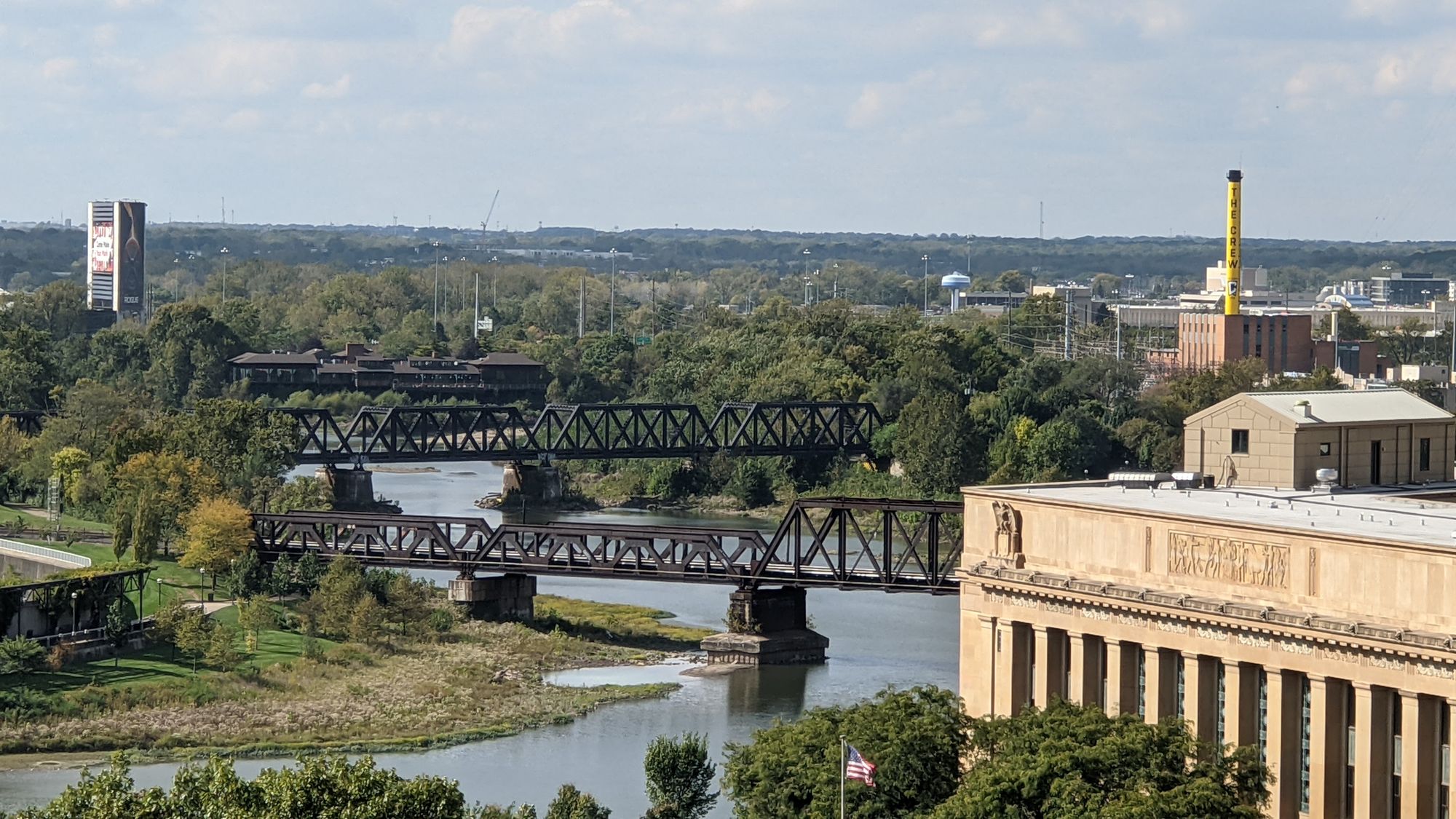 Ohio is named after the Ohio River, which forms its border to the South and East. Much like Ohio itself, the Ohio River is under-appreciated. According to Wikipedia it discharges more water into the Mississippi than the Missouri and is the biggest river of the whole system. About 10% of the American population live in the Ohio River basin.