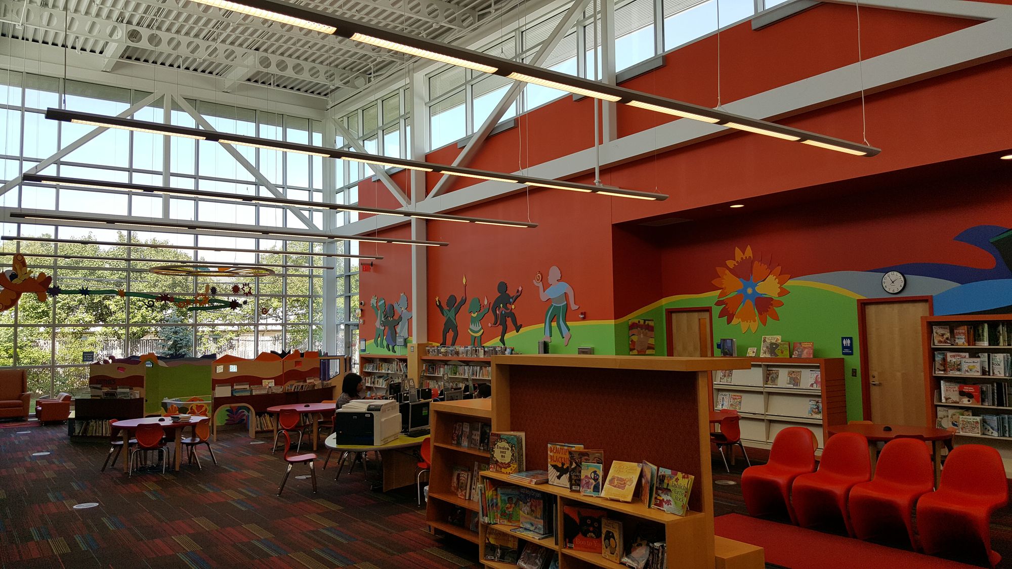 New Karl Road branch in Columbus. Children's library in a branch of Cuyahoga County Public Library (Cleveland). A wall near Dayton Central Library.
