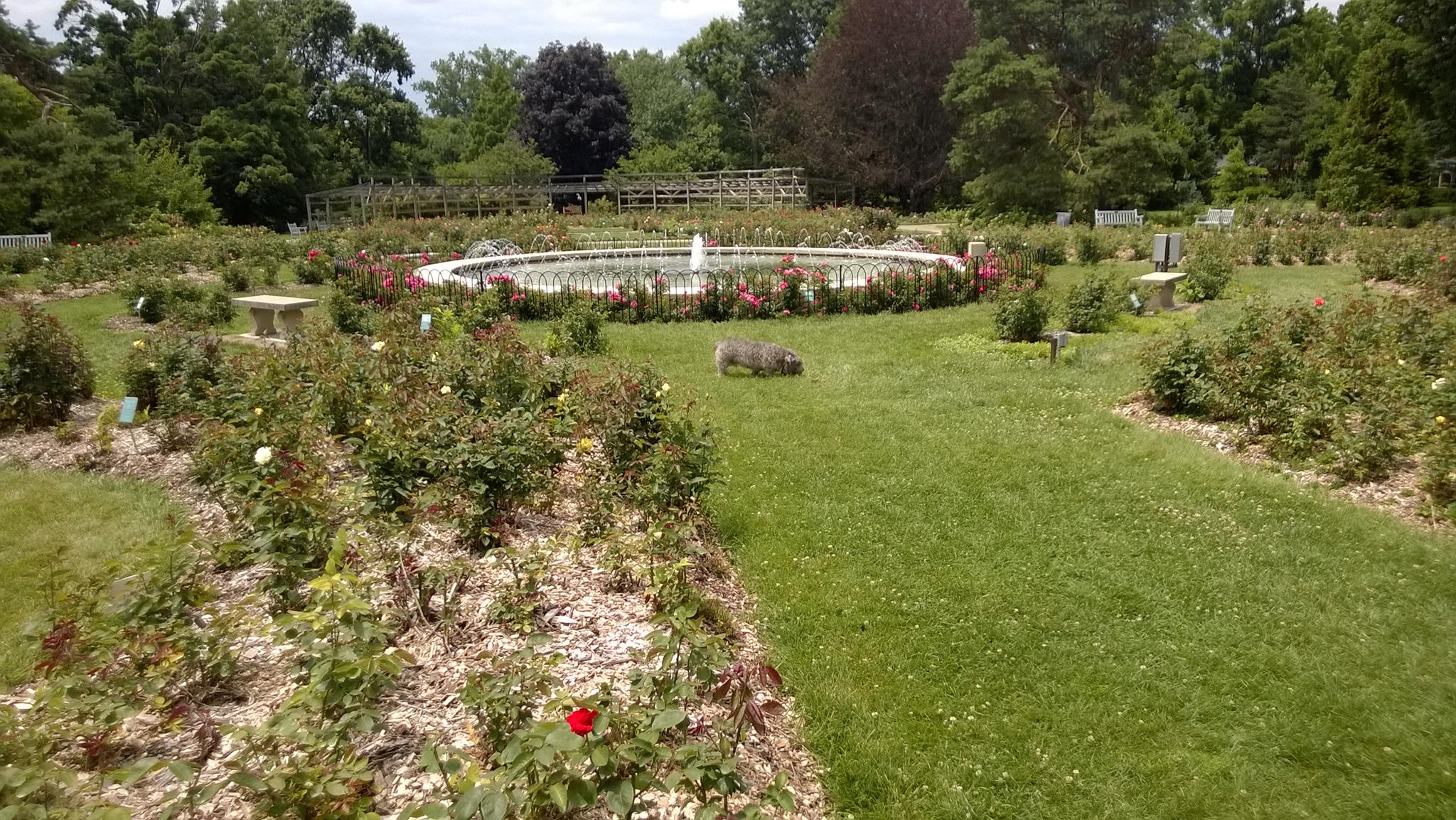 Whetstone Park. Right: our dog Douglas in the Park of Roses