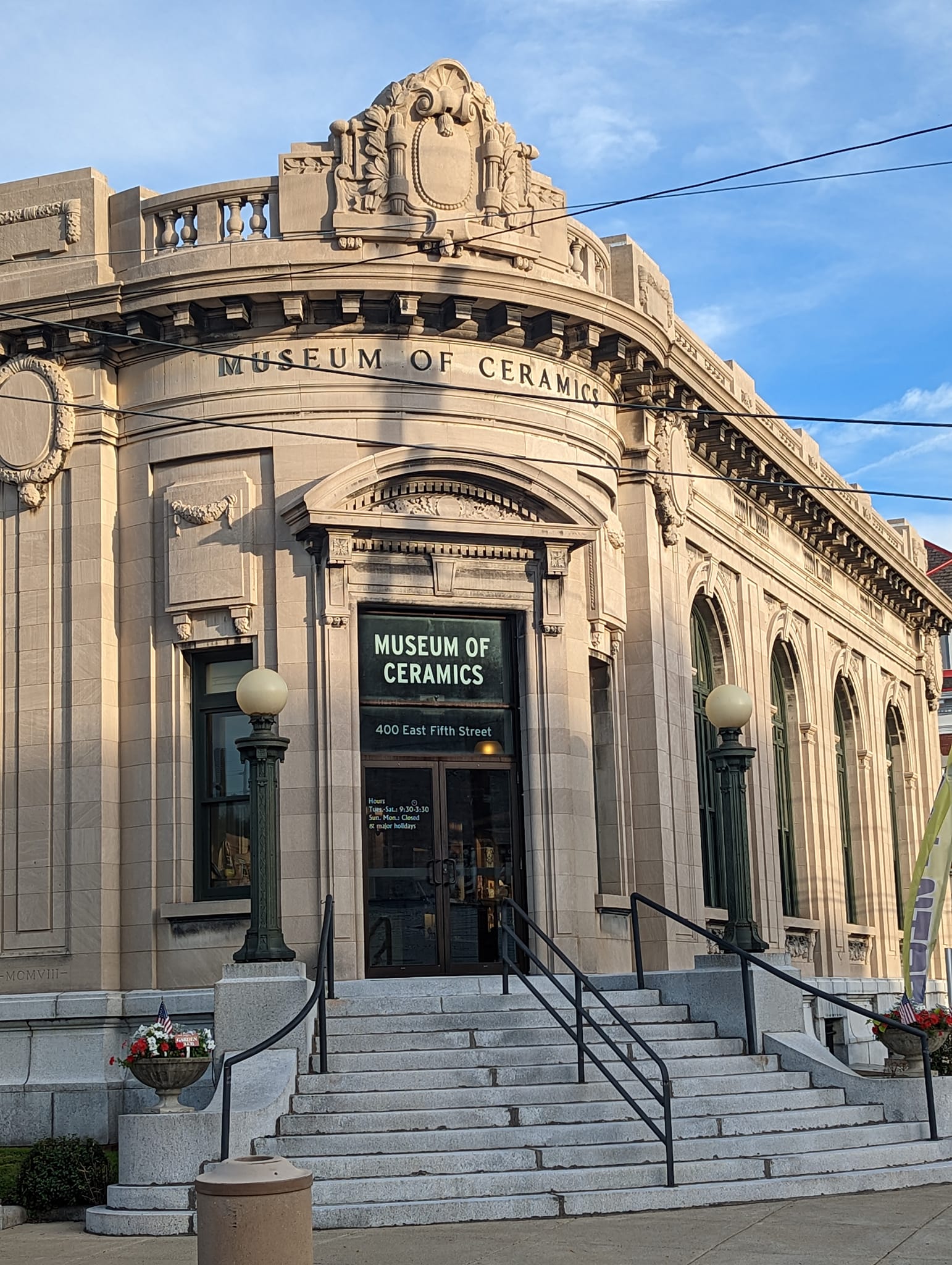 East Liverpool. Downtown. Belleek china - influenced by the Irish china of the same name. The Museum of Ceramics.