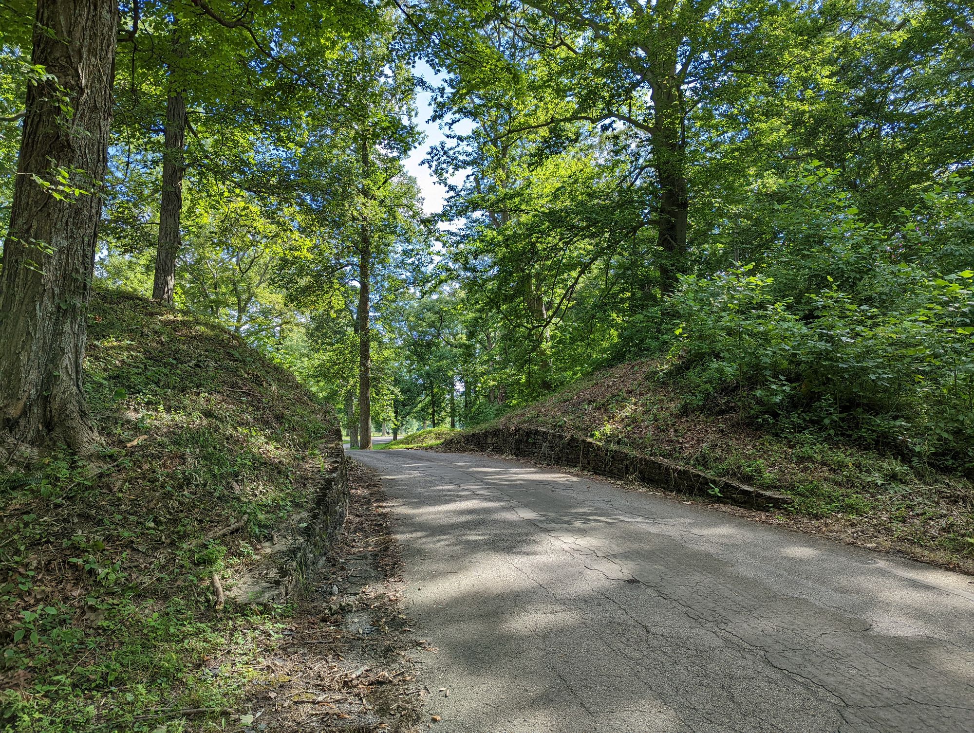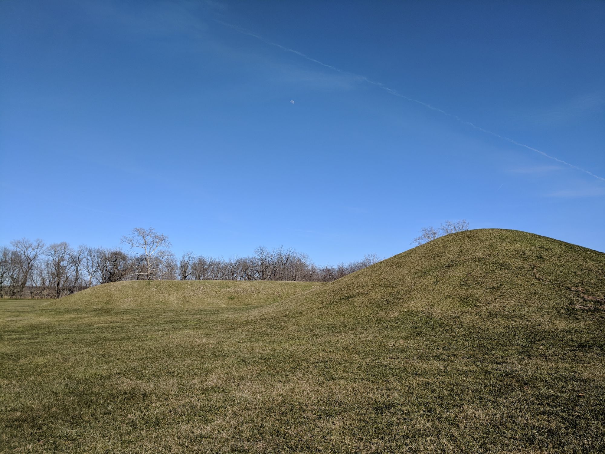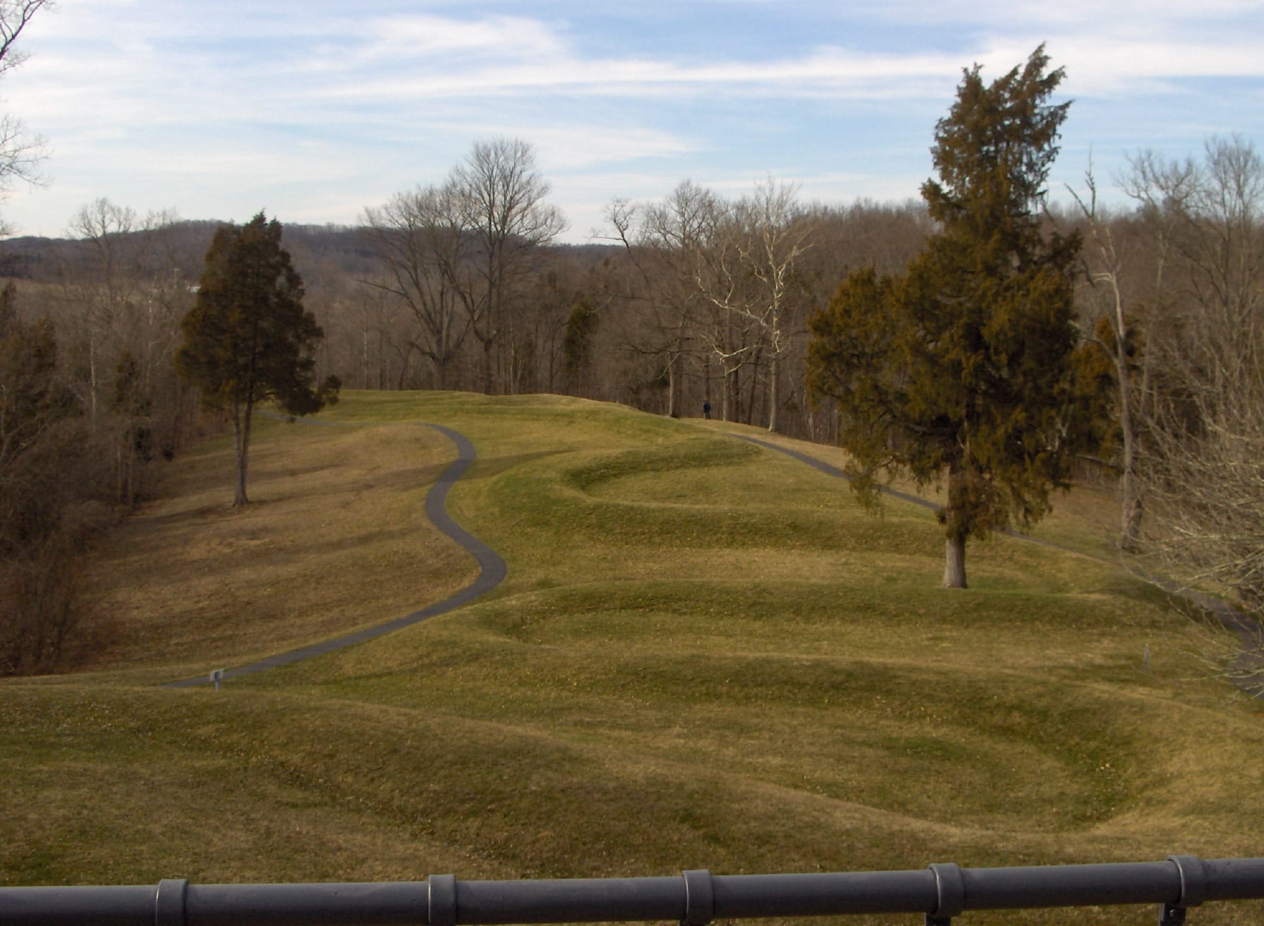Mounds at Hopewell Park. A road going through a mound at Fort Ancient. Serpent mound.