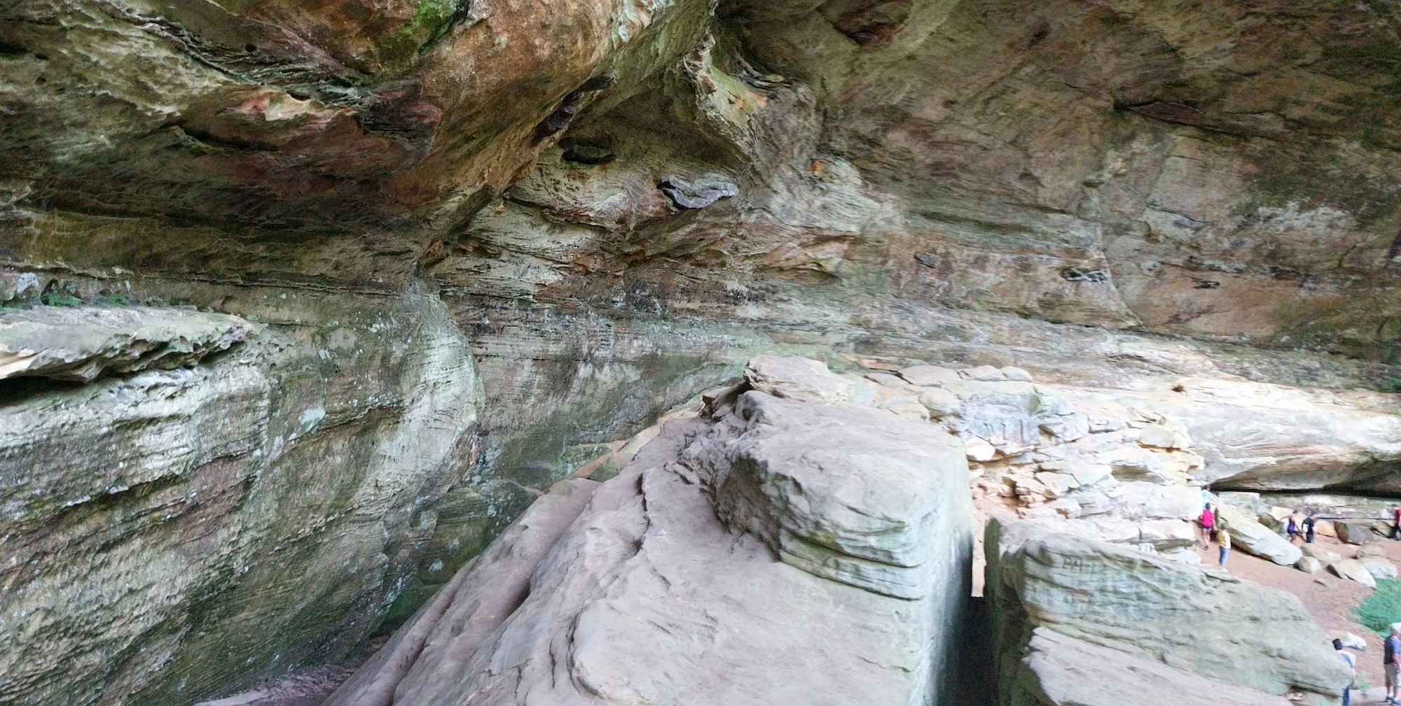 The Hocking Hills are in Appalachian Ohio, with cliffs, gorges, caves, and waterfalls formed from erosion of the soft sandstone. They are spectacular and contrast topographically with the dominant flatness of the State.
